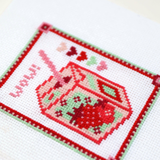 Pink Strawberry Juice Box - Cross-Stitch Kit